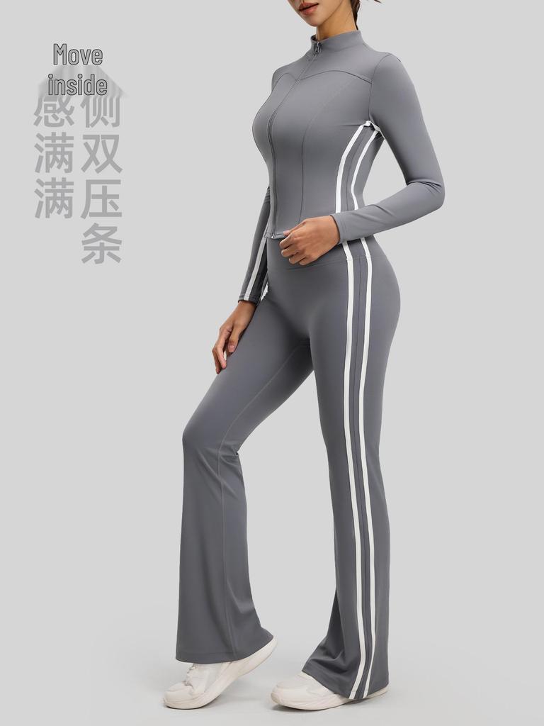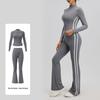 Yoga Flared Pants and Top Striped Slimming Sportswear Set