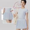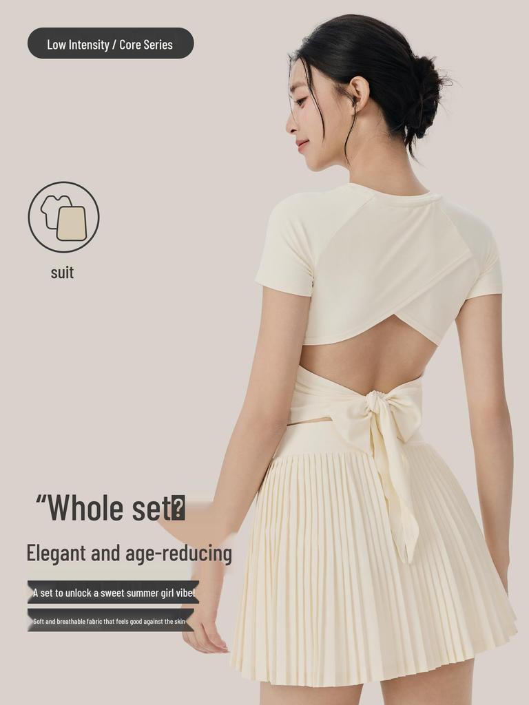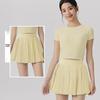 Women's Short Sleeve Yoga Suit & Pleated Tennis Skirt Set