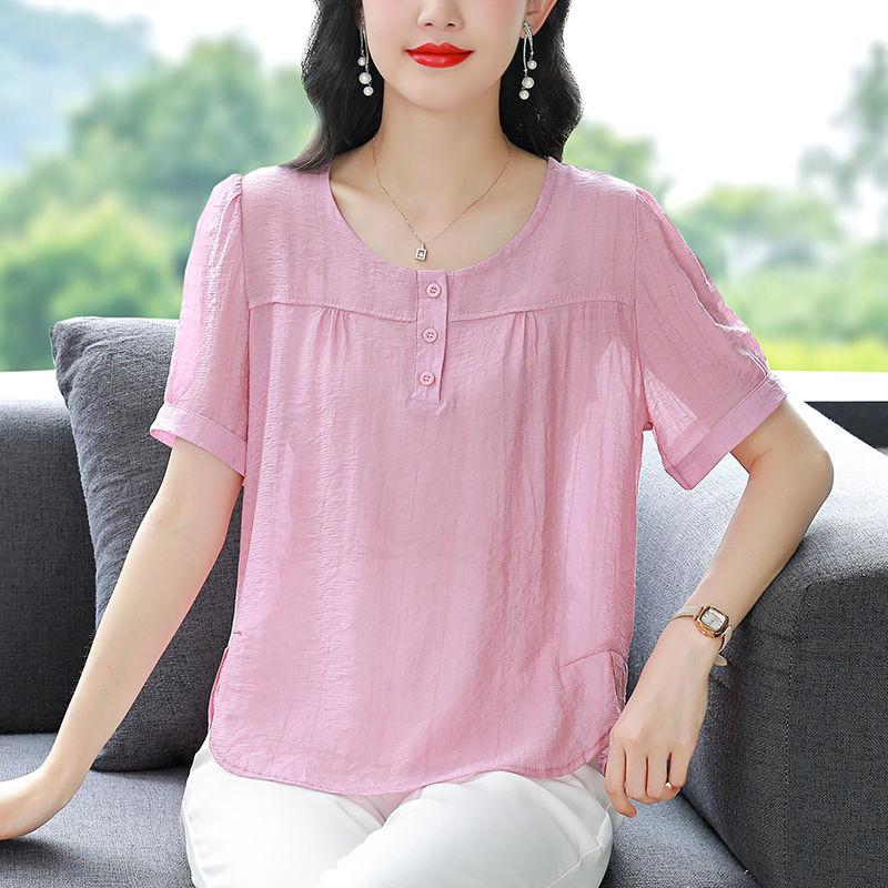 Chiffon Shirt Summer Women's New Belly-covering Breathable Slim and Thin Round Neck Simple Casual Large-size Top