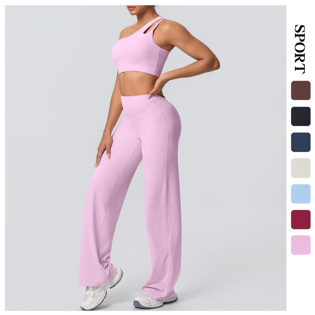 Cloud-Like Casual High Waist Yoga Set - Women's Sporty Wide Leg Fitness Wear