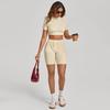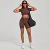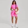 European & American 3D Patchwork Quick-Dry Yoga Set: Tight Short Sleeve & Shorts