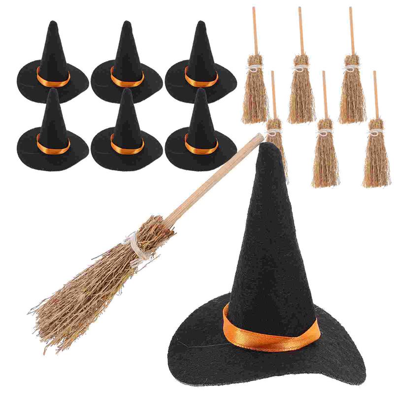6 Set Hats Broom Set Miniature Party Hats Decor Tiny Witch Hat Nament Small Witch Hats For Festive Supplies Diy