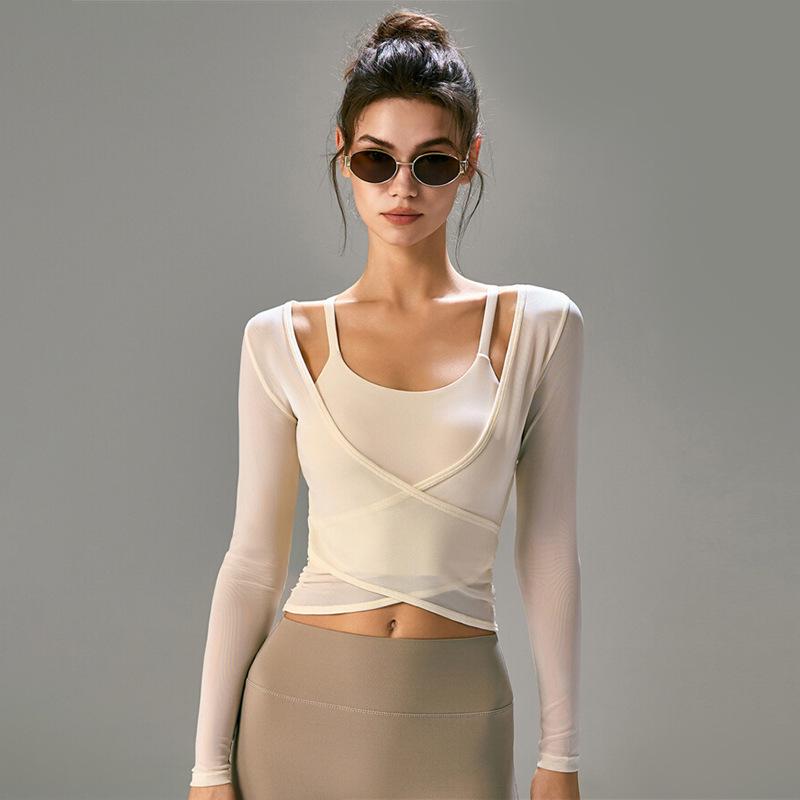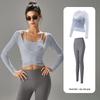 Women's Professional Yoga Set: Long Sleeve, Waist-Cinching, Slimming Two-Piece for Pilates with Chest Pads.