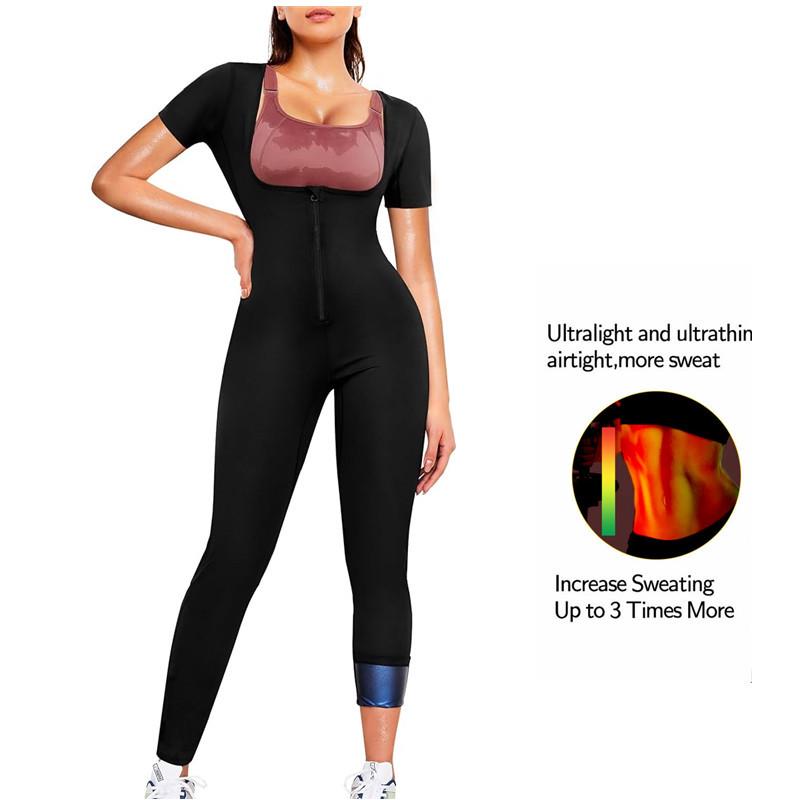 Women's Yoga Sweat-Inducing Jumpsuit for Butt Lifting & Abdominal Tightening - Short Sleeve, Long Pants Fitness Wear