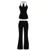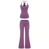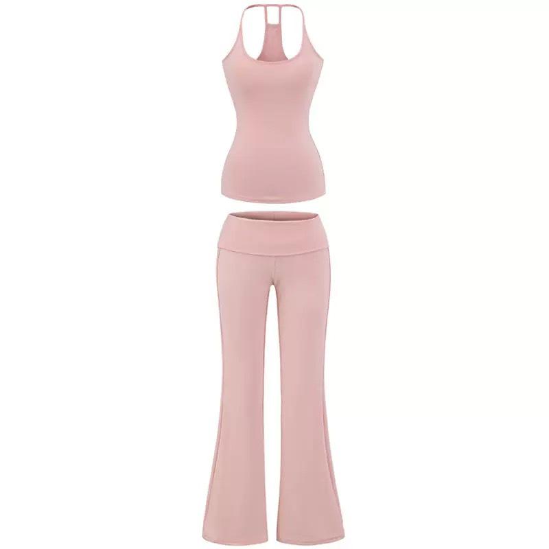 Women's Cross-border Yoga Set: Bare Feel Sports Tank with Chest Pads & High Elastic Flared Fitness Pants