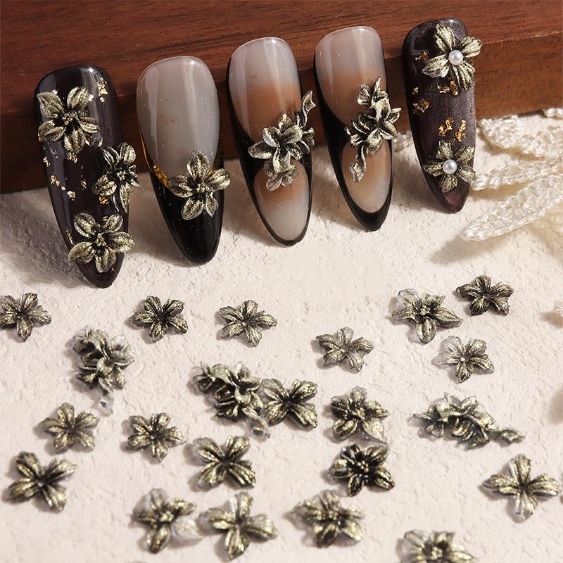 Vintage Gilded Flower Nail Rhinestones Nail Gems Kit Nail Art Charms DIY Nail Decoration Manicure Accessories Nail Salon