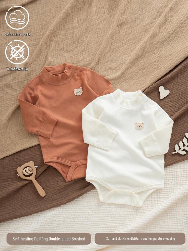Baby Unisex Fleece Bodysuit: Autumn/Winter Thick Snap-Crotch, High-Collar, Long-Sleeve