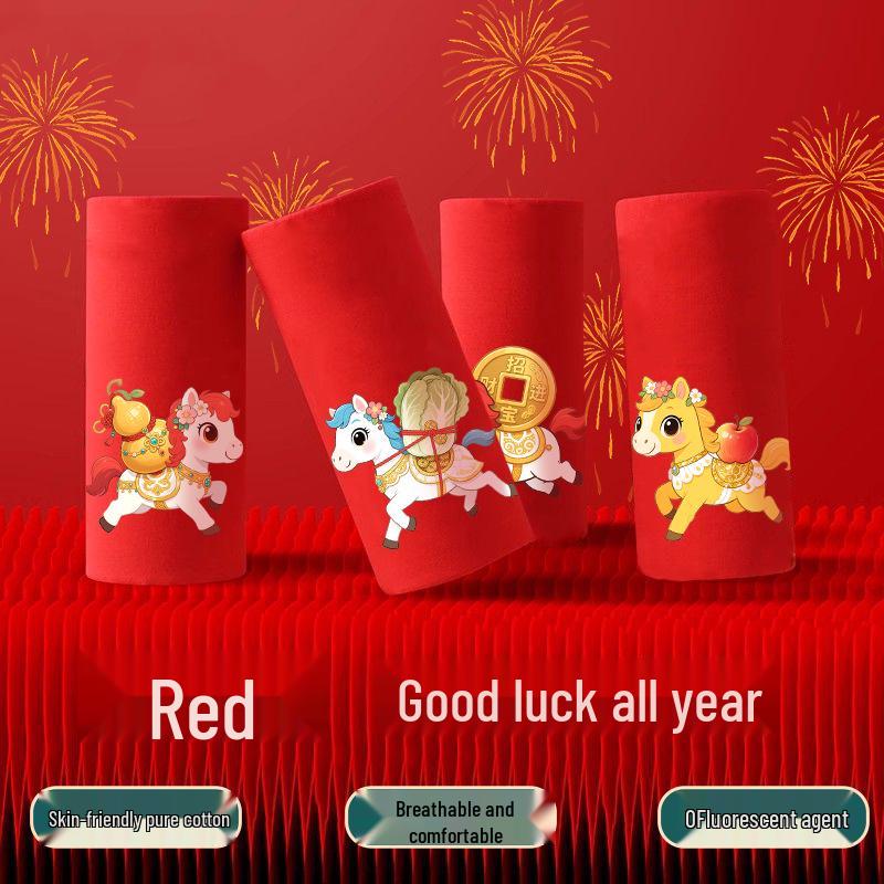 Girls' 2026 Year of the Dragon Red Cotton Boxer Briefs, Breathable Class A Shorts for Children