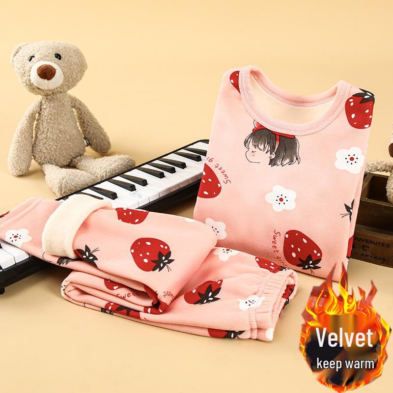 Keep your little ones warm and cozy with this velvet-lined two-piece winter pajama set. Crafted from high-quality artificial silk material, the set offers a soft and smooth feel that's gentle on the skin. Designed for both boys and girls, it features excellent thermal insulation to retain body heat during chilly nights. This practical and stylish thermal underwear set ensures maximum comfort while allowing for free movement, making it perfect for a peaceful night's sleep or lounging at home.