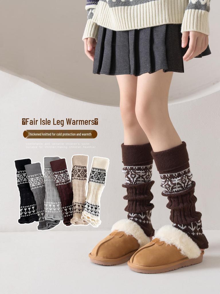 Girls' Korean Fair Isle Leg Warmers - Warm, Thick, and Slouchy for Autumn and Winter