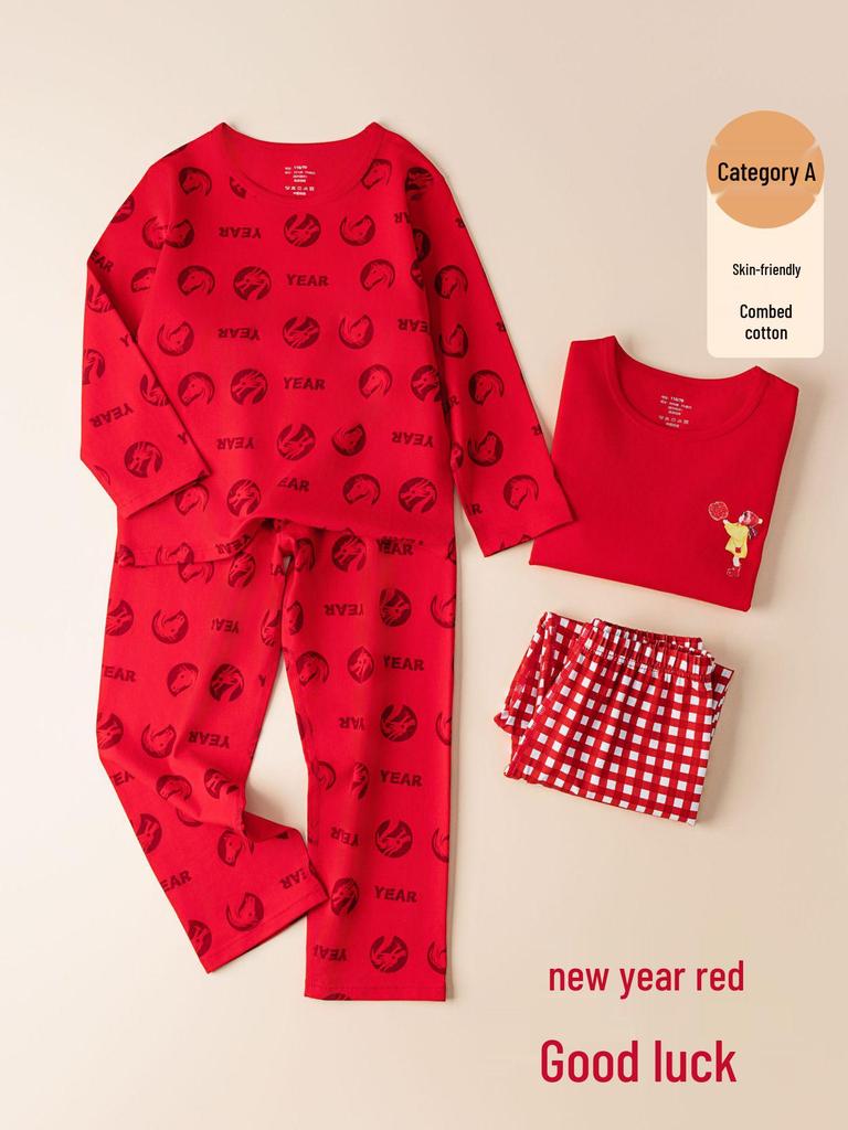 Introduce your child to the comfort and warmth of this vibrant red cotton base layer set, perfect for autumn and winter. Designed for both boys and girls, this set features long sleeves to ensure full coverage and coziness during the colder months. Made entirely from premium cotton, it provides softness against the skin while maintaining breathability, making it ideal for both lounging and sleeping. With its cheerful design inspired by the Year of the Dragon, this pajama set brings a touch of playful charm to your child's sleepwear collection.
