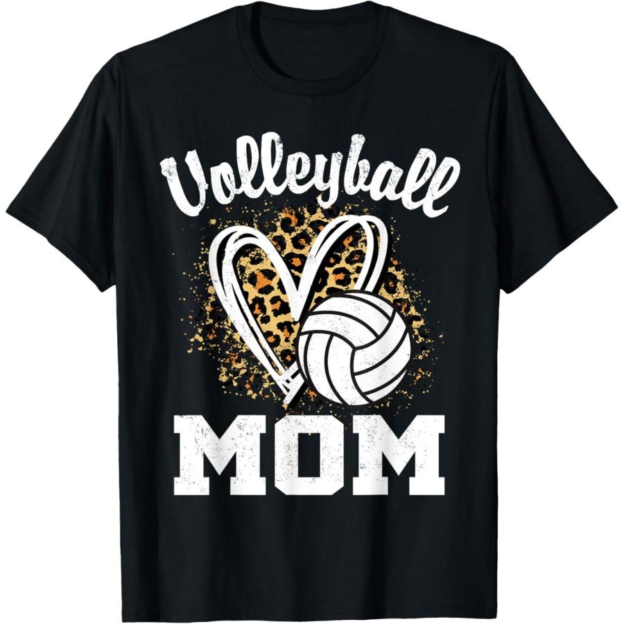 Volleyball Mom Leopard Heart T-Shirt(1)