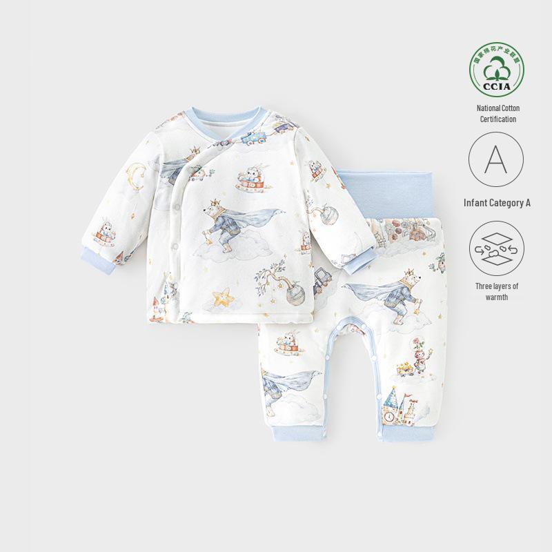 Keep your little one warm and stylish during the colder months with this charming winter quilted cotton outfit. This two-piece set includes a long-sleeve jacket and matching pants, both crafted from soft and breathable cotton material. Designed for both comfort and functionality, the outfit offers a cozy fit while allowing for ease of movement. Perfect for any outdoor adventure, this set combines warmth and style effortlessly.