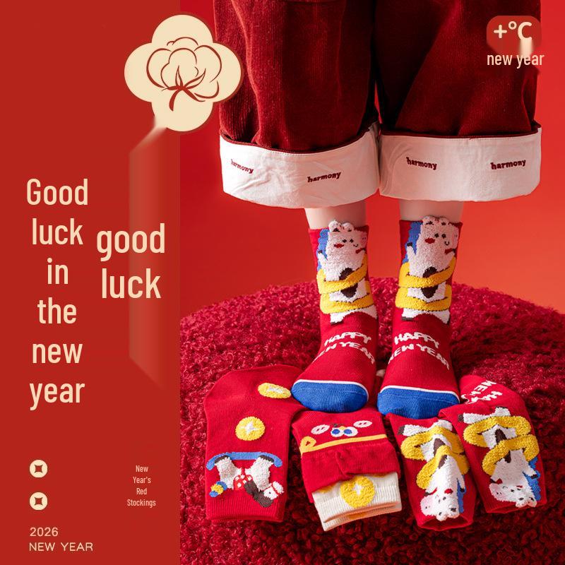 Kids' 3D Cartoon Year of the Horse Red Zodiac Socks - Combed Cotton, Seamless, Cute Design