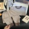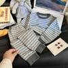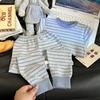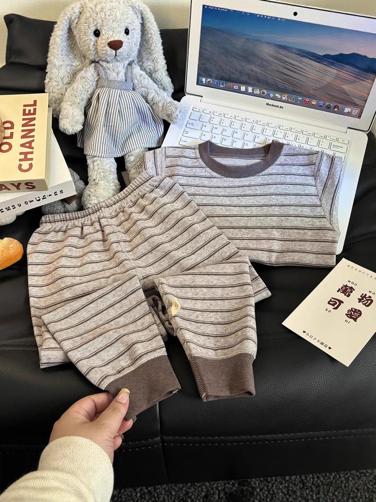 This cozy children's underwear set is crafted from high-quality cotton, providing a plush velvet feel that's perfect for keeping your little ones warm during the cooler months. The set features a charming striped design, suitable for both boys and girls, and includes long sleeves for added comfort and coverage. Ideal for home wear, this thickened set ensures softness and warmth, making it a perfect addition to your child's autumn wardrobe.