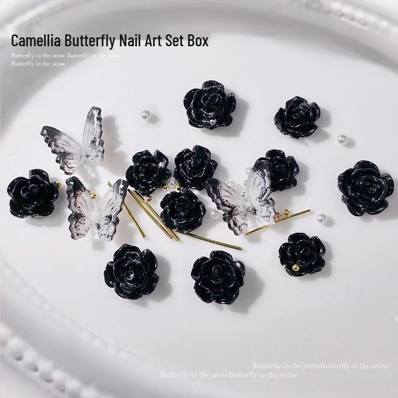 Nail Art Set: 3D Butterfly, Camellia, Pearl, Black & White Accessories