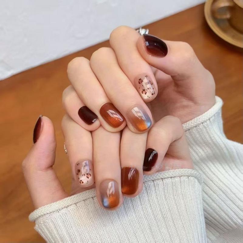 Elegant 2025 Handmade Autumn/Winter Leopard Print Cat Eye Amber Nail Art Stickers - Removable and Skin-Whitening
