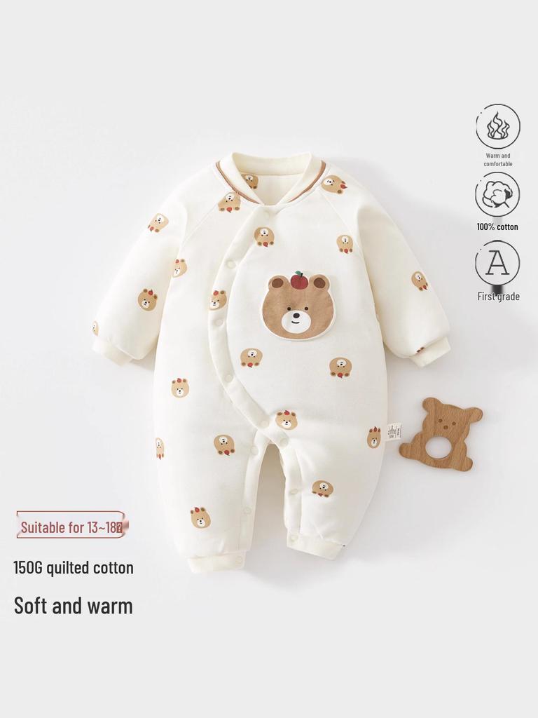 This cozy baby bodysuit is designed for the cooler autumn and winter months, offering warmth and comfort for your newborn. Crafted from quilted cotton, it ensures a soft touch against your baby's delicate skin, making it perfect for home wear. With its long sleeves, this Class A bodysuit provides extra coverage, ensuring your little one stays snug and comfortable throughout the day.