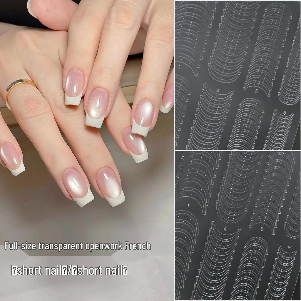 Clear French Nail Art Stickers: Ultra-Thin Stencils for Short & Long Nails, Glue Application Tool