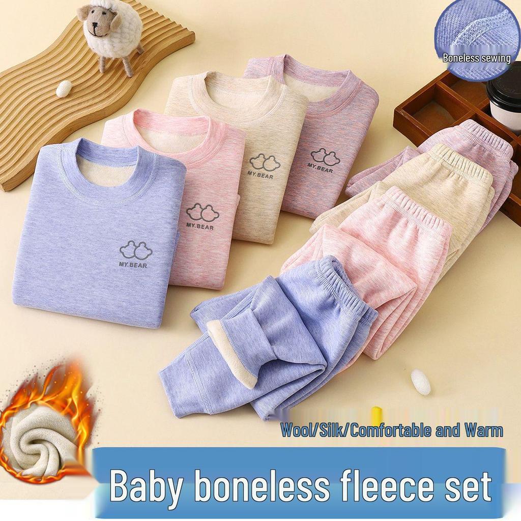 Koala Fleece Seamless Kids' Warm Suit: Brushed Thick Underwear for Autumn & Winter