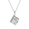 Openable Book Necklace Stainless Steel Gold Color Message Mini Book Pendant Necklace with Pages of Engraved Information