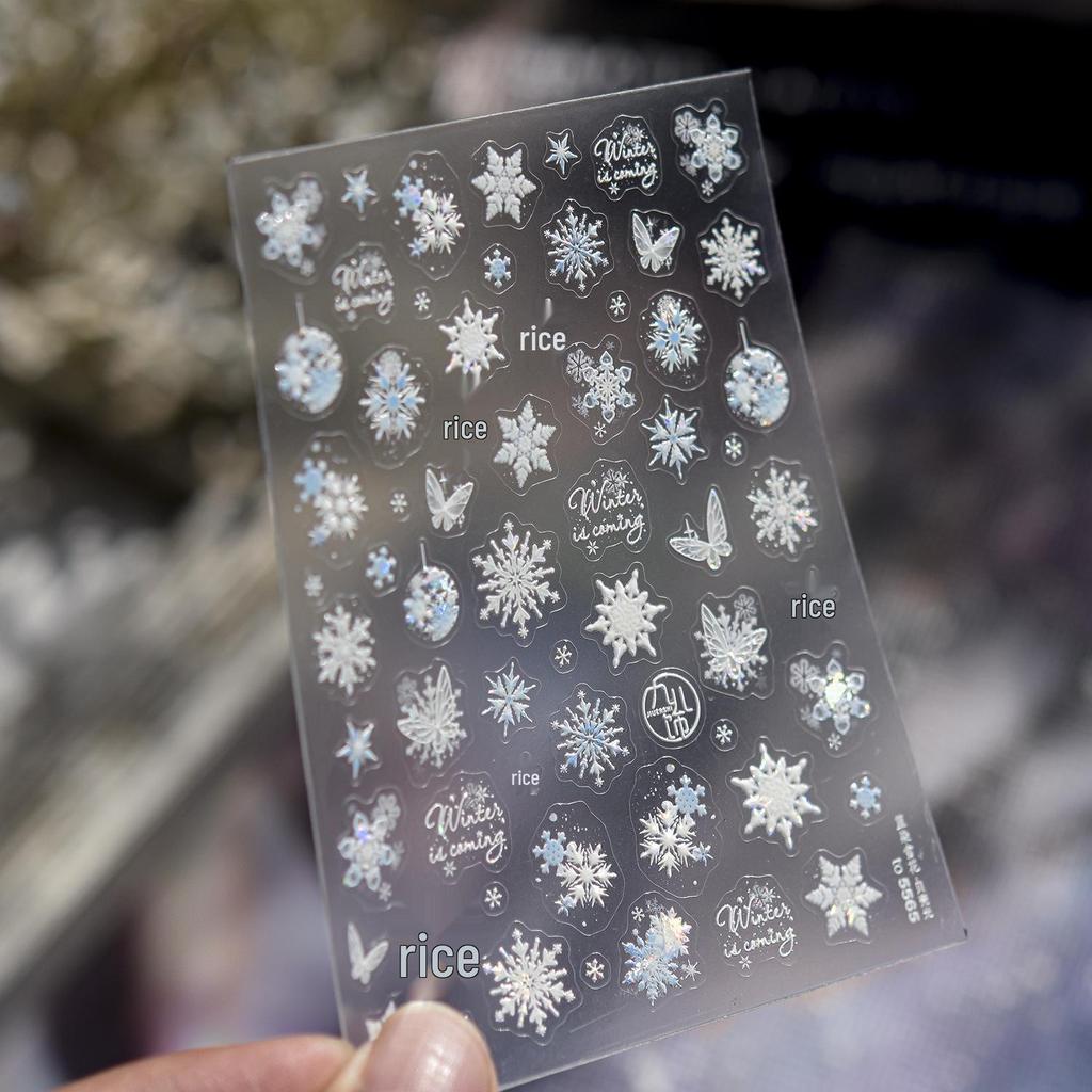 Tomoni Shell Light Winter Dream Nail Stickers - Ice Transparent Snowflake & Butterfly Decoration.