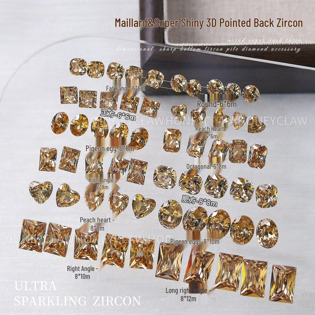Champagne & Light Coffee Zircon Nail Art Gems: Large Pointed, Teardrop, Horse Eye, Pigeon Egg Shapes