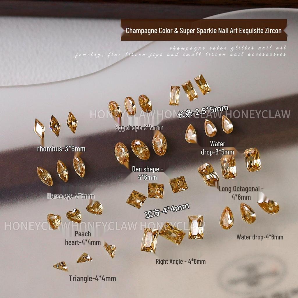 5A Champagne Champagne & Coffee Tone Zirconia Nail Art Rhinestones - Irregular Shapes: Water Drop, Horse Eye, Pigeon Egg.