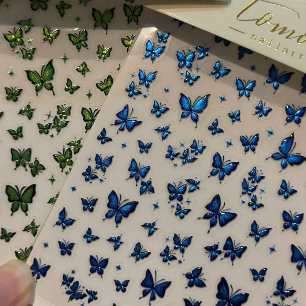 Blue Butterfly Glitter Nail Stickers - Cat Eye Fairy Design, Adhesive Back, Small Patterns
