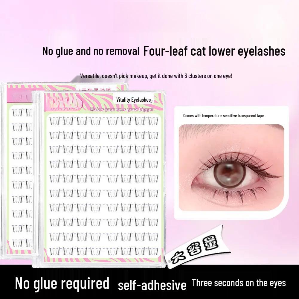 Four-Leaf Cat Lower Lashes: Super Natural Korean Girl Segment, Glue-Free False Eyelashes for a Born-Beautiful Look