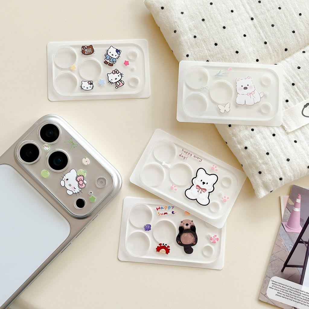 Adorable iPhone 17 Pro Max Lens Sticker: Little Bear & Kitty Camera Decoration with Pen Holder and Nail Stickers!