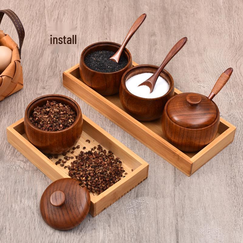 Retro Jujube Wood Spice Jar Set with Lid - Custom Logo Salt Shaker & Seasoning Box for Kitchen