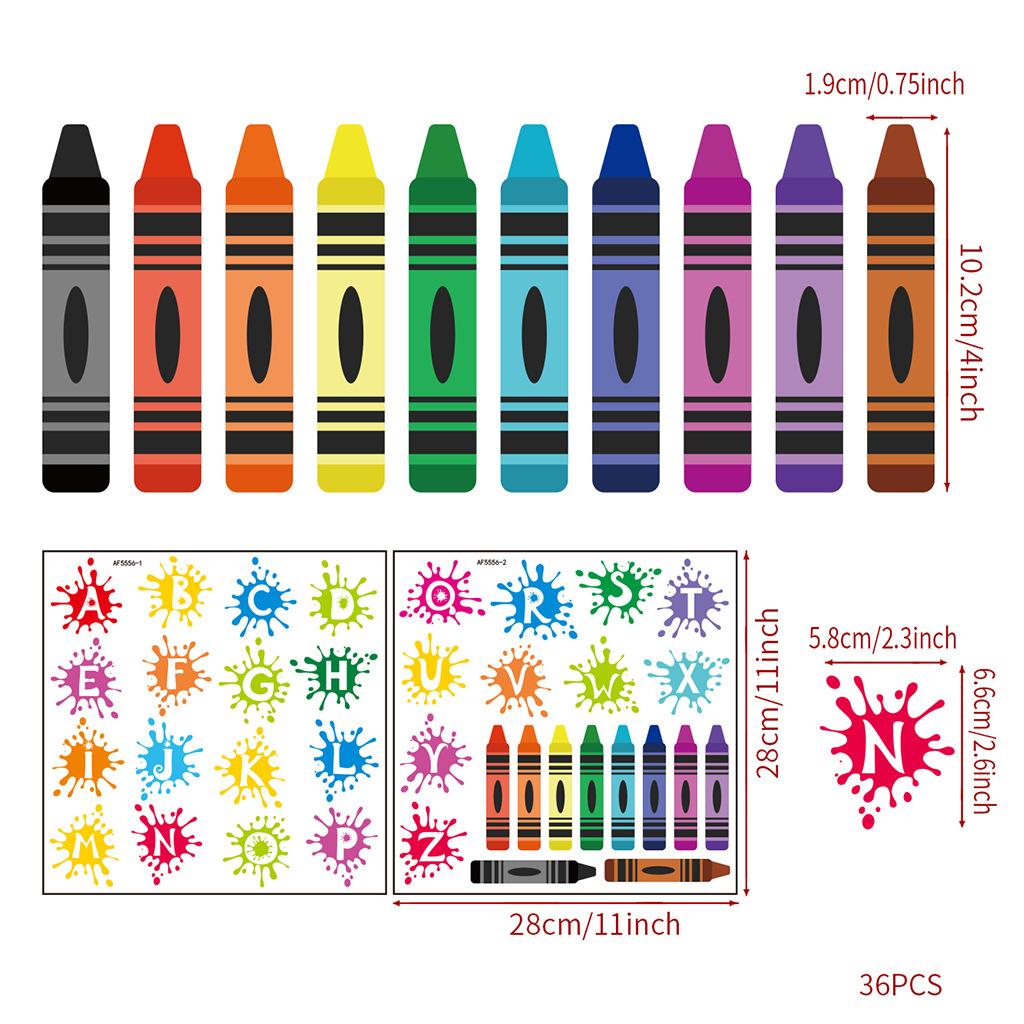 Colorful Crayon Alphabet Wall Stickers, Educational ABC Letters Removable Decals for Kids Room Nursery Learning Decor