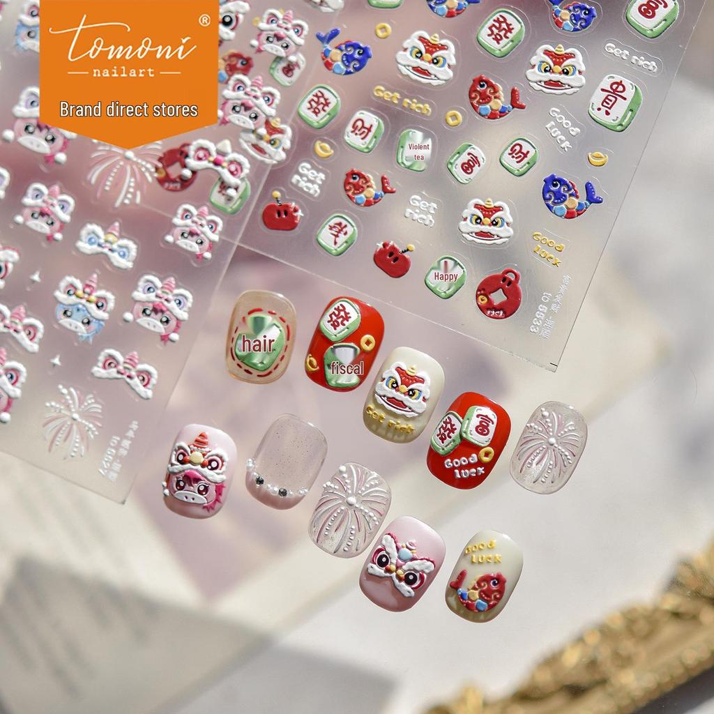 Tomoni Festive Embossed Nail Stickers - Chinese New Year of the Horse & Lion Dance Design