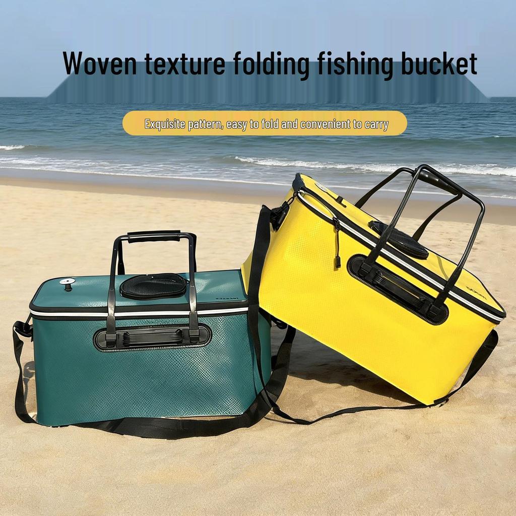 Durable Multifunctional Skylight Fishing Tackle Box: Folding Fish Bucket with Woven Texture for Portable Live Catch Storage.