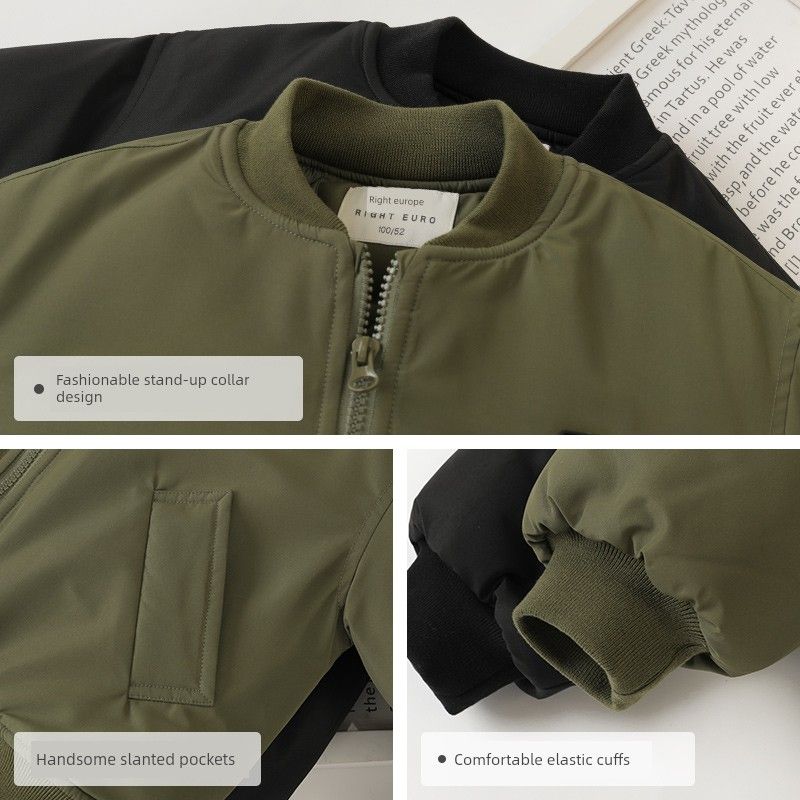 Boys' Baseball Jacket Cotton Coat Winter Clothing Thickened Warm Cotton Jacket Children's Clothing Baby Padded Trendy