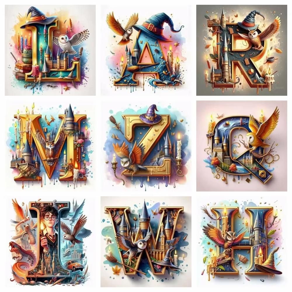 Harry Potter Fantasy Castle and Owl Letters Diamond Painting Cross Stitch Art Magical Alphabet Witch House Mosaic Home Decor