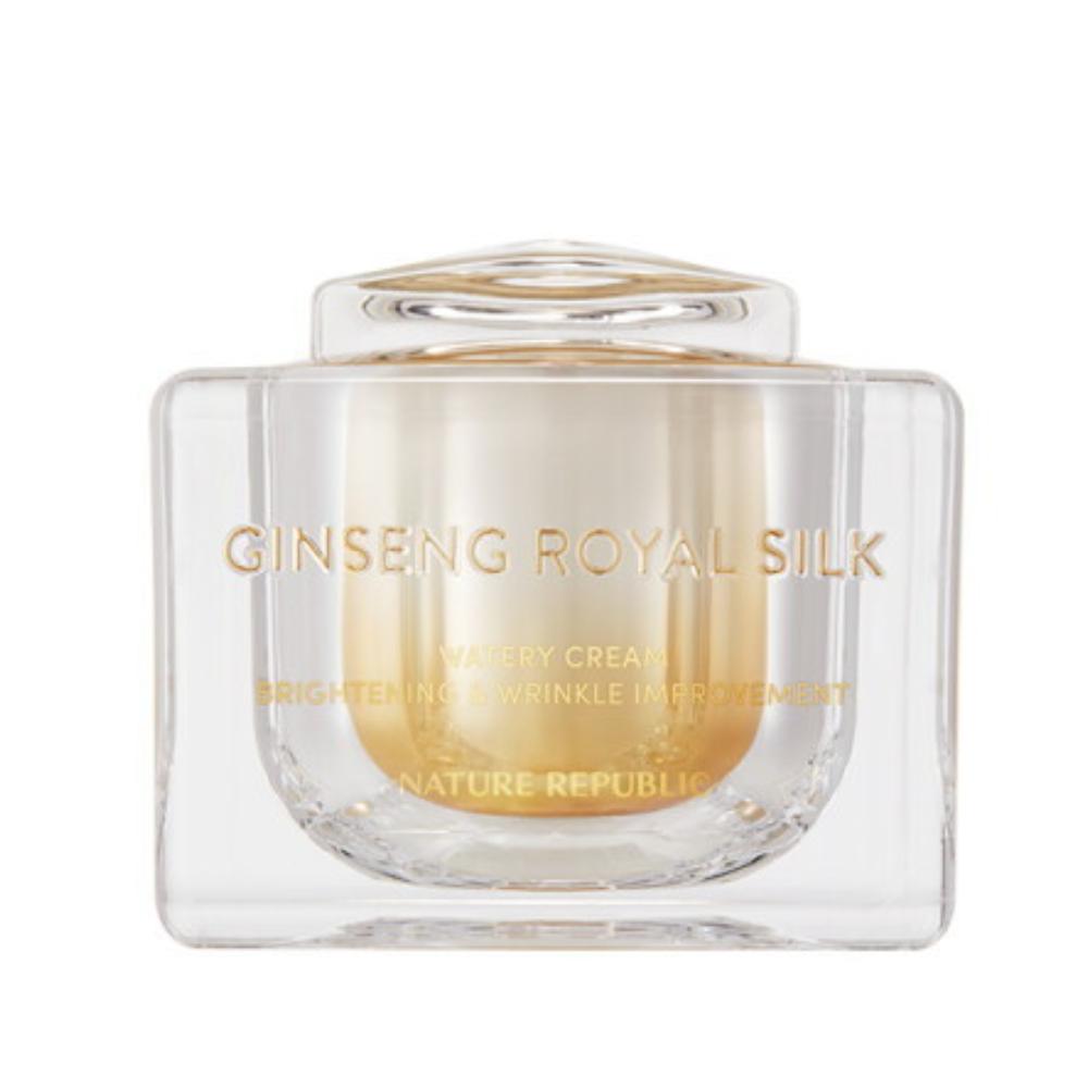 SEO Keywords: Nature Republic Ginseng Royal Silk Watery Cream, Korean celebrity cream, luxury anti-aging moisturizer, 99% pure gold face cream, red ginseng skin care, royal jelly cream, K-beauty wrinkle improvement, firming watery cream, premium gold skincare, intensive anti-aging cream.