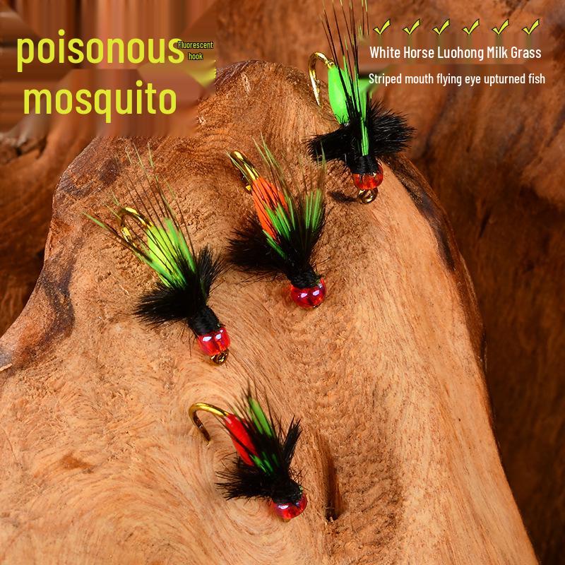 Tinplate Crankbait Rod with Red Sleeve Hook & White Stripe Melon Seed Lure - Gen 2 Poison Mosquito Fly & Tilapia Lure Set