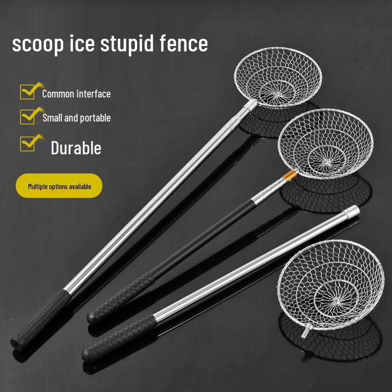 Telescopic Aluminum Ice Fishing Rod with Bait Holder and Metal Sieve Spoon