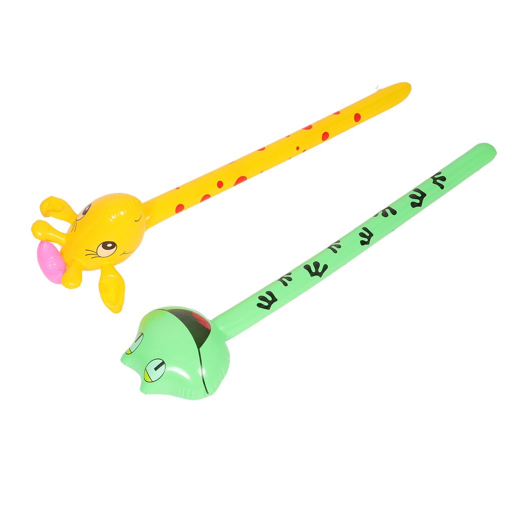 2Pcs Inflatable Animal Head Toys Jungle Balloon Sticks Blow Up Giraffe Frog Hammer Toy Balloons Accessories Child Play Party Fun