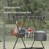 Portable Double-Layer Foldable Storage Rack with Mesh Bag for Outdoor Camping, Self-Driving Tours, Home Use, and Picnics.