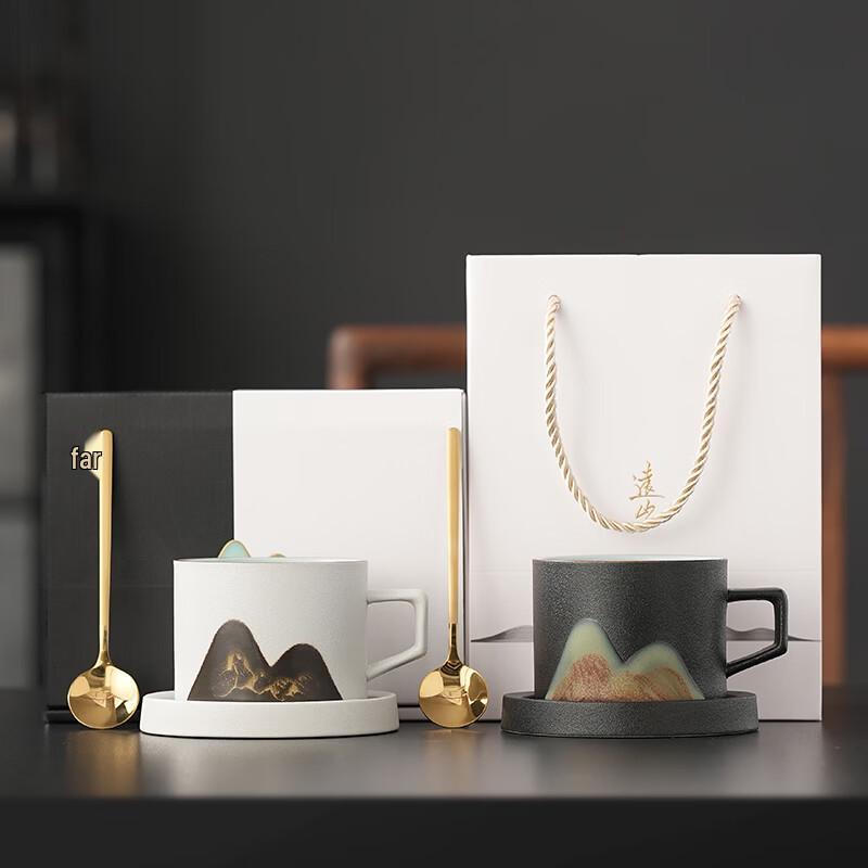 Wushiyuan Far Mountain Ceramic Coffee Cup Set with Spoon & Gift Box