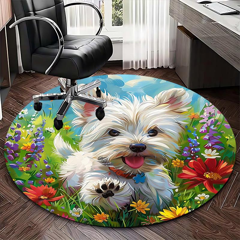 1pc Anime Design Round Carpet Office Chair Mat, Non Slip Rug for Home Decor, All Seasons