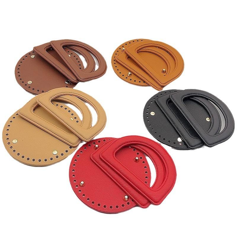 3Pcs/Set Handmade Bag Accessories, Same Color Leather D-Shaped Handle, Leather Bag Bottom, Yarn Weaving DIY Materials