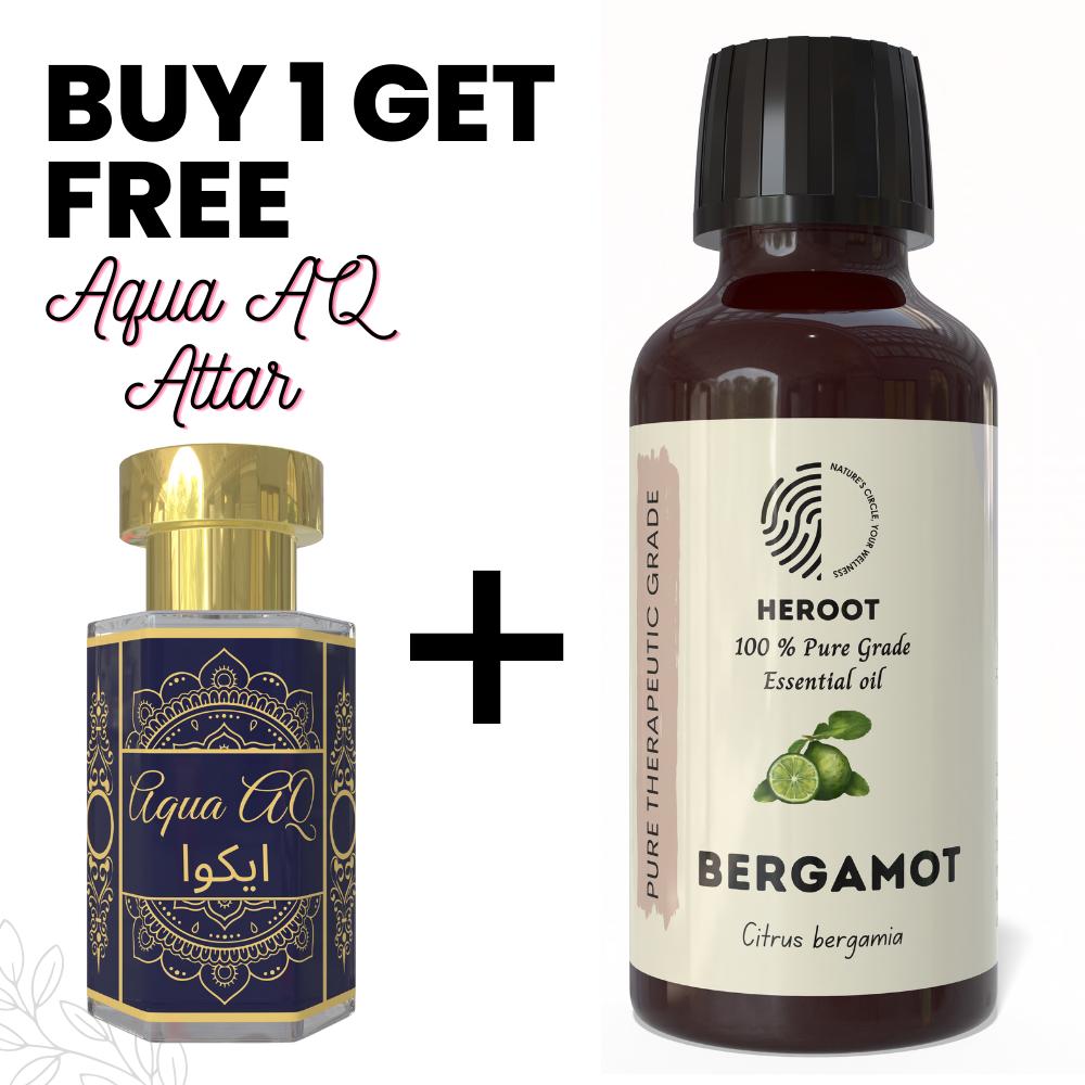 Bergamot Essential Oil 10ml for Aromatherapy & Home Fragrance with Free 6 Ml Attar – Aqua AQ, Dubai Oud, Aura, White Oud