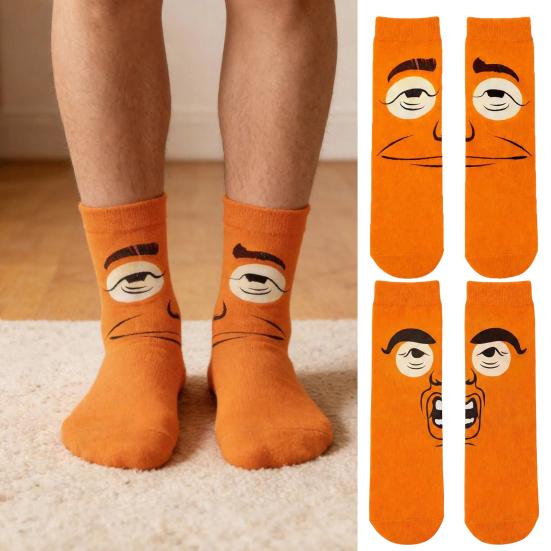 1 Pair Funny Expression Socks Autumn Winter Moisture Wicking Breathable Mid-calf Socks Men Women Stretch Sports Casual Crew Socks