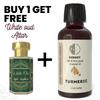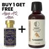 This combo includes one 10ml bottle of Turmeric Essential Oil along with one free attar of your selected variant – Aqua AQ, Dubai Oud, Aura, or White Oud. Each variant adds its own character, from fresh aquatic notes to deep woody and oriental tones, allowing you to choose the fragrance that suits your mood and space.