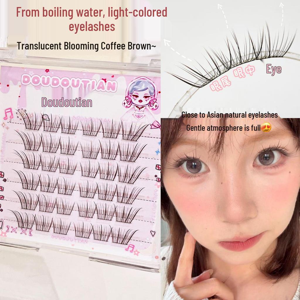 Kou Kou Sweet Coffee Brown & White False Eyelashes - Natural Black Brown, Clear Fan-shaped Enhancements