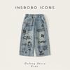 Girls' Spring Clothing 2026 New Children's Pants Girls' Jeans Spring and Autumn Boys' Graffiti Long Pants Straight-Leg Pants Children's Clothing
